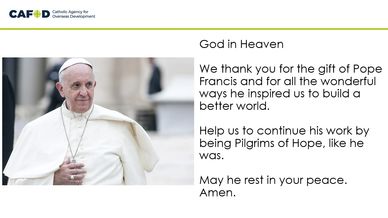 Please join us in this CAFOD prayer thanking God for Pope Francis.