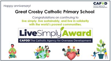 We are delighted to be recognised with this certificate marking five years since our CAFOD Live Simply award.