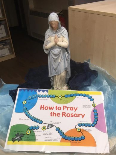 One of our Year 3 pupils brought in a bottle in the shape of Our Lady filled with holy water from Lourdes.