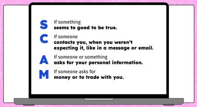 Use these tips to help you stay safe from scams online and enjoy your time learning, playing and chatting with others.